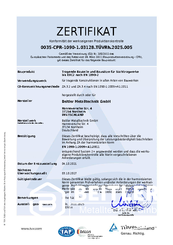 Zertifikatsnummer: TÜVRh-EN1090-2.02964.2025.005