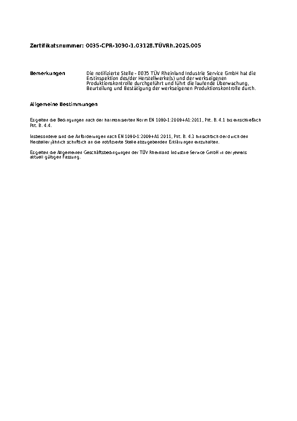 Zertifikatsnummer: 0035-CPR-1090-1.03128.TÜVRh.2025.005