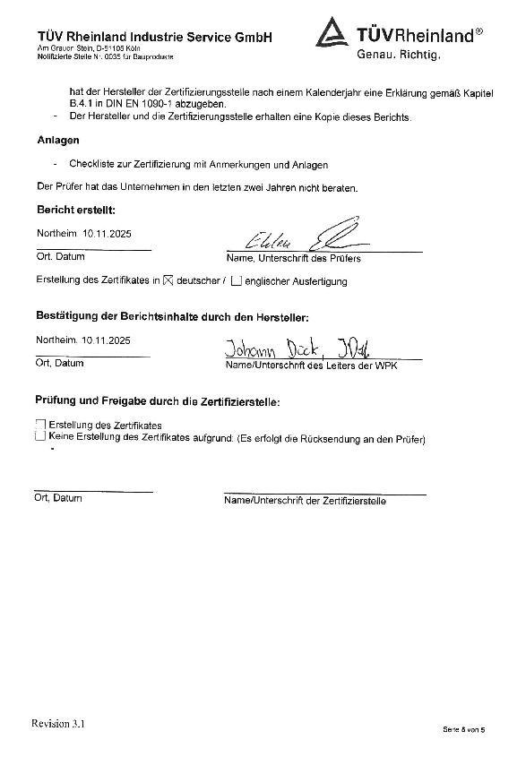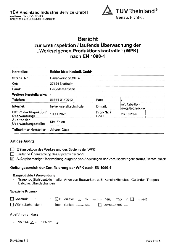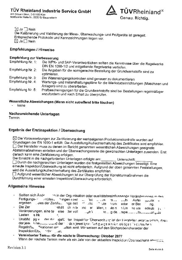 TÜV-Überwachungsbericht – Werkseigene Produktionskontrolle (WPK)