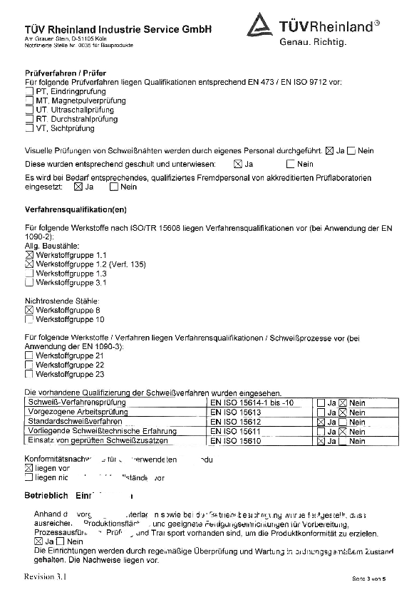 Schweißzertifikat nach EN 1090-2 – Ausführungsklasse EXC2